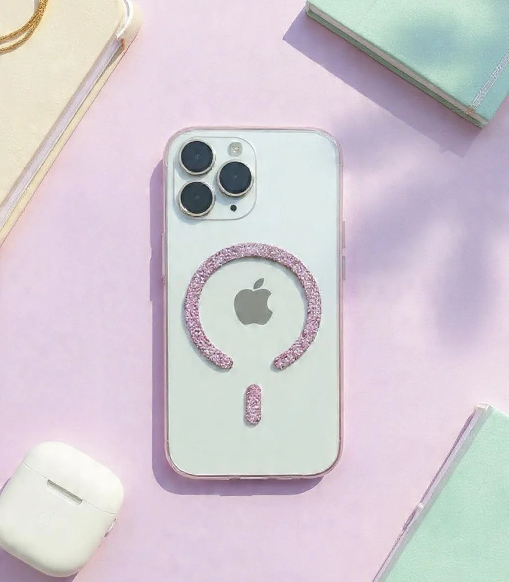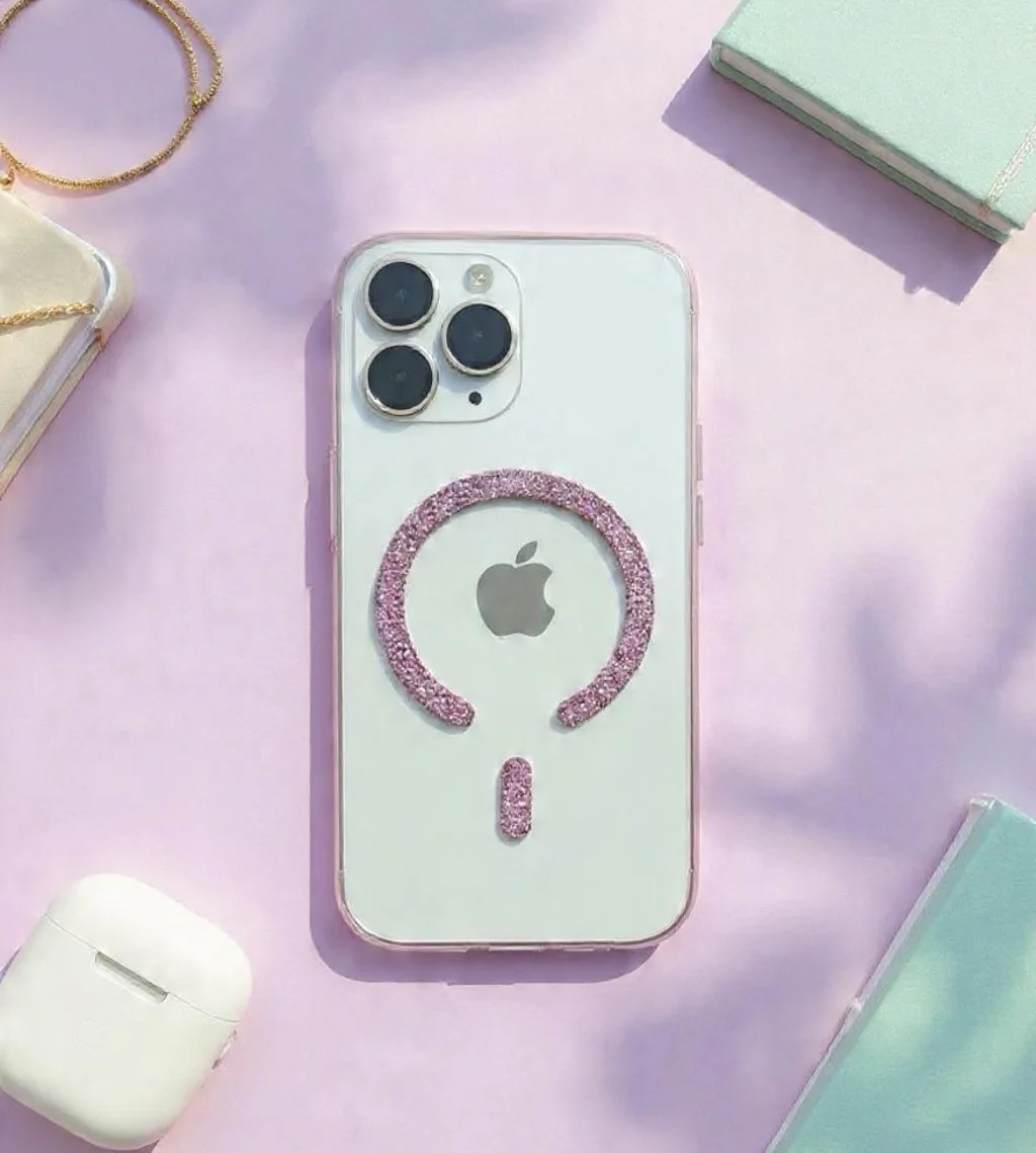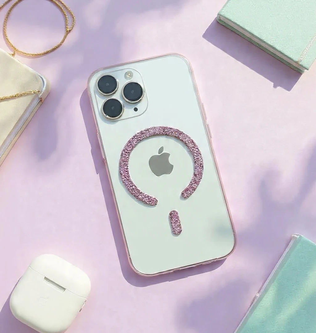 The glitter orbit ring is precisely aligned with the internal magnets, ensuring smooth compatibility with MagSafe chargers and magnetic accessories. The ring also adds a natural grip zone, making the phone more secure and comfortable to hold during calls, selfies, or scrolling.