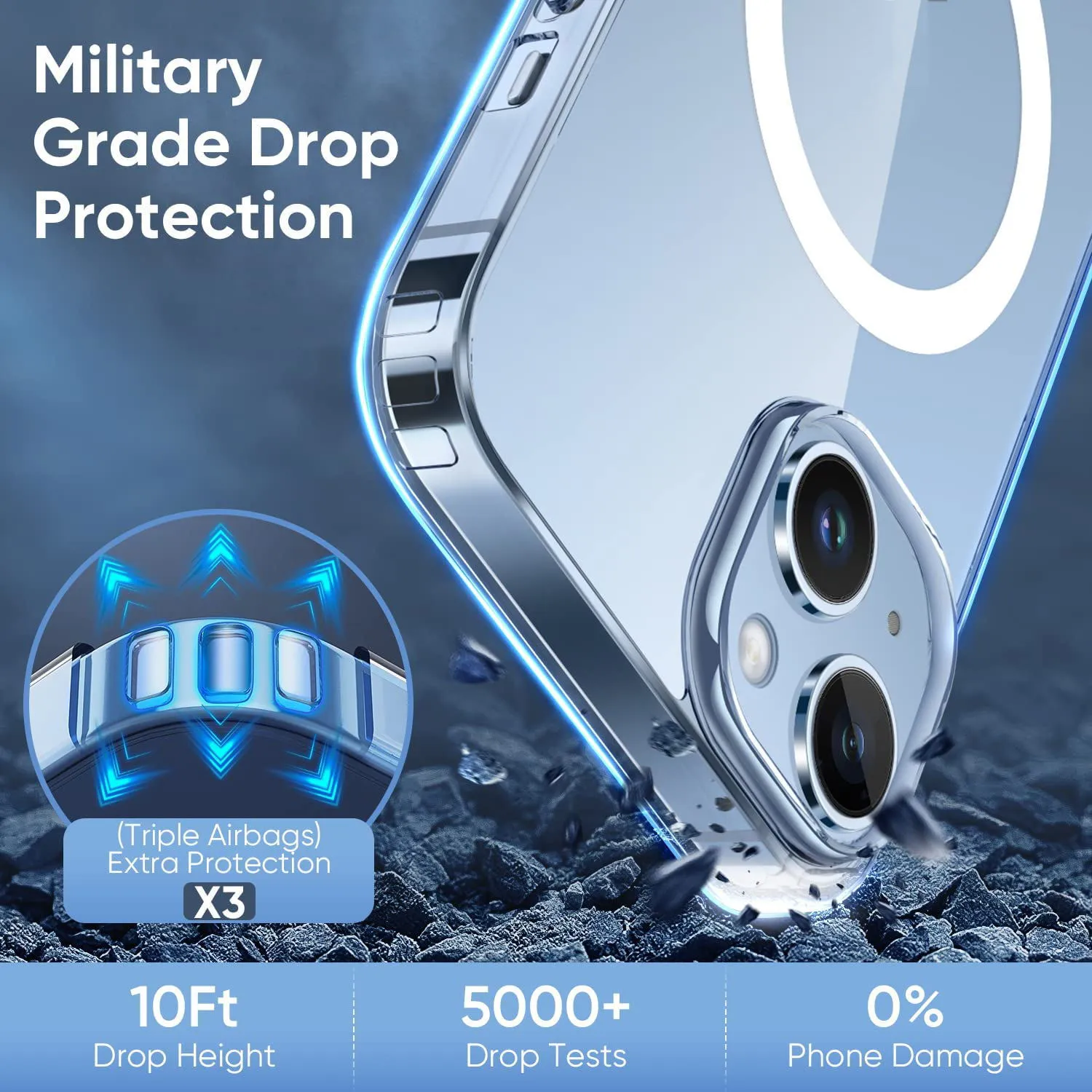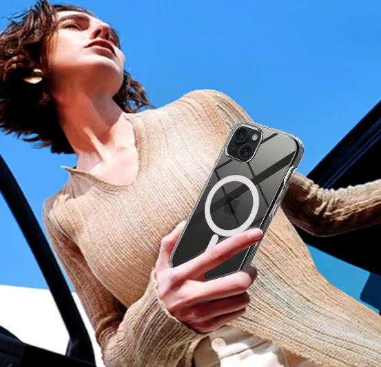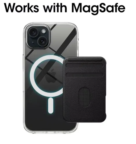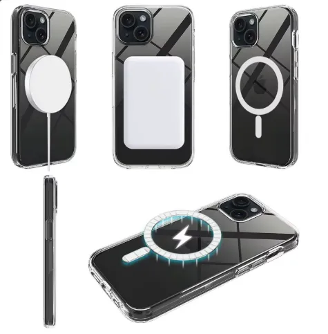 iPhone 15 MagSafe PrismDuo Flux Ring Case merges crystal-clear transparency with functional MagSafe power convenience.