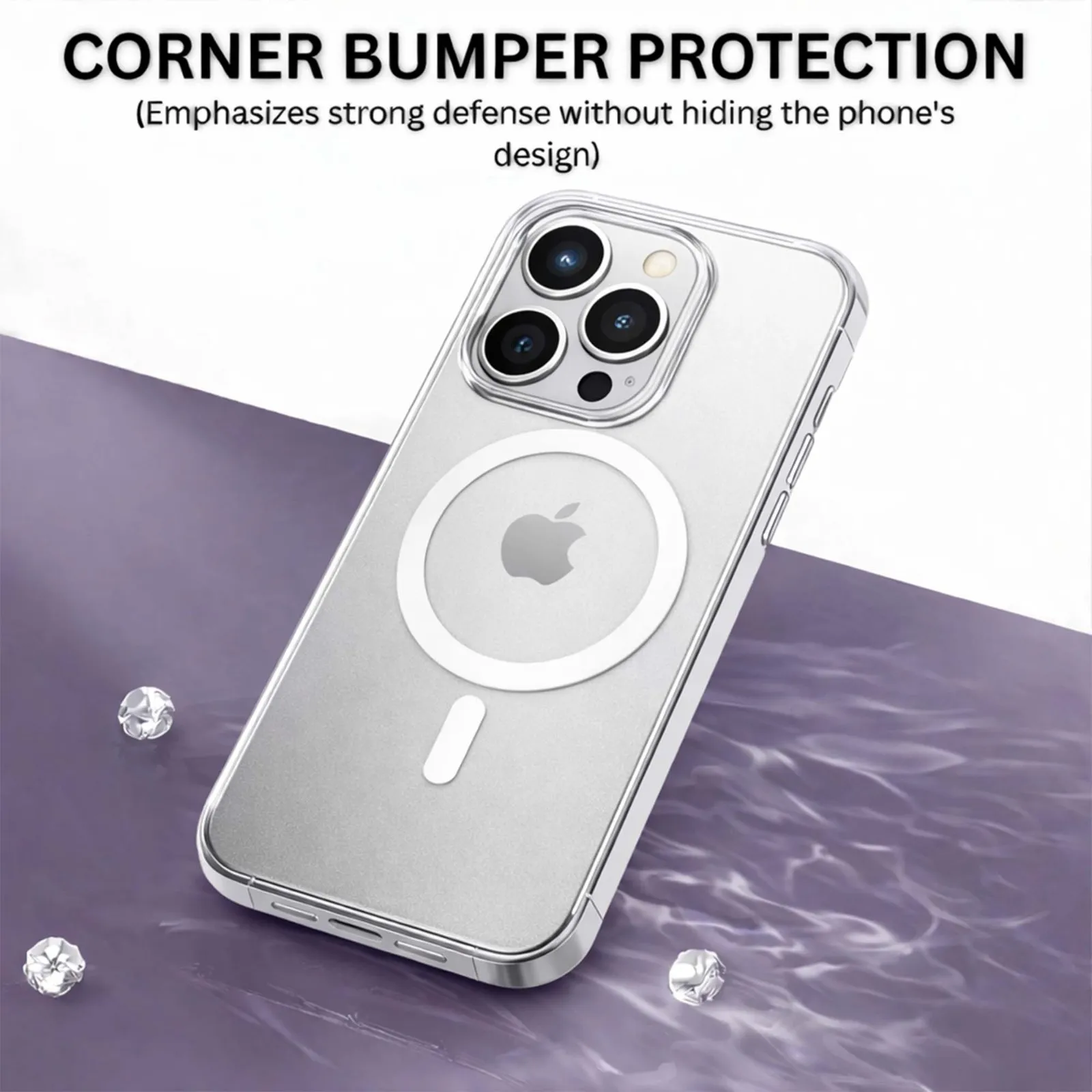 Elevate your iPhone 16 Pro Max with our premium Bumper MagSafe Case. Crafted from shock-absorbing TPU bumpers and durable polycarbonate back, it offers 360° drop protection up to 12ft while maintaining a slim, crystal-clear profile to flaunt your phone’s stunning titanium finish. Powerful N52 magnets enable effortless MagSafe charging, stands, and wallets. Raised bezels shield the advanced quad-camera and vibrant display. Precision cutouts ensure easy access to all ports, buttons, and the Camera Control. Fingerprint-resistant for lasting clarity.